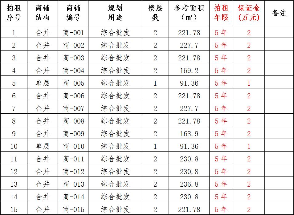 (一)拍租位于鎮(zhèn)雄縣南臺街道呢嚕坪安置點7棟獨立商鋪使用權(quán)。以棟為單位拍租。詳見下表: