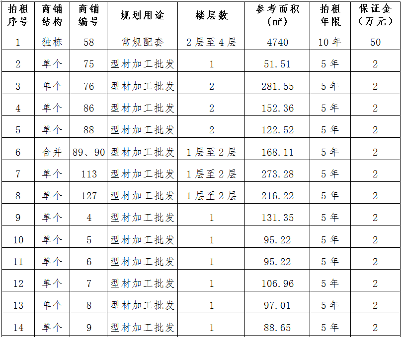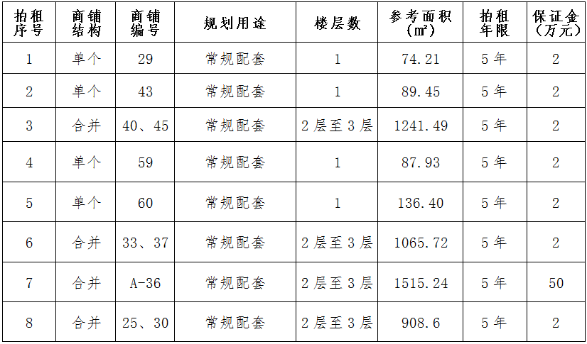 (三)拍租位于鎮(zhèn)雄縣舊府街道魯家院子安置點24間商鋪使用權(quán)。以間為單位拍租。詳見下表: