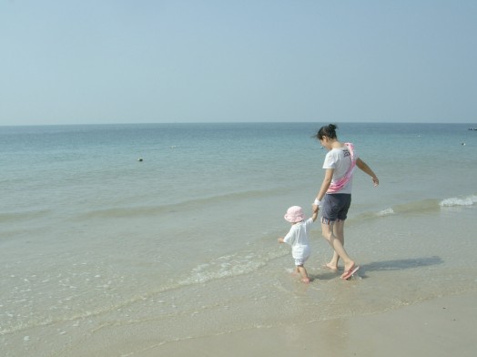 海灘上留下了無數指尖大小的小孔隙,出于好奇,我蹲下來靜靜地觀察,發(fā)現有小小的螃蟹從小孔隙里爬出來,象我一樣好好沐浴燦爛陽光、溫暖海風;有些頂著米粒大的沙團推出小孔隙,原來是小螃蟹寶寶在造穴,多勤勞呀,從小就養(yǎng)成了愛勞動的習慣;最好玩的是好不容易逮著一只螃蟹寶寶放在手心任其橫行霸道,直癢得我開懷大笑……..