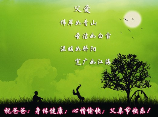 每年的6月第三個星期天就是父親節(jié),從來就沒跟老爸表示過什么,從小老爸對我的愛一直都是默默地,無言的,深沉德,不記得有多少次的細節(jié)讓我感動。