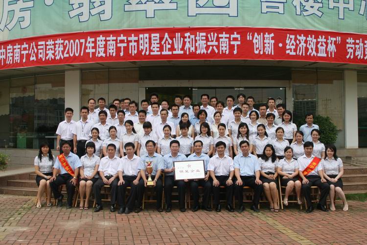 中房南寧公司榮獲2007年度南寧市明星企業(yè)和振興南寧“創(chuàng)新、經(jīng)濟(jì)效益杯”勞動(dòng)競(jìng)賽金杯獎(jiǎng)
